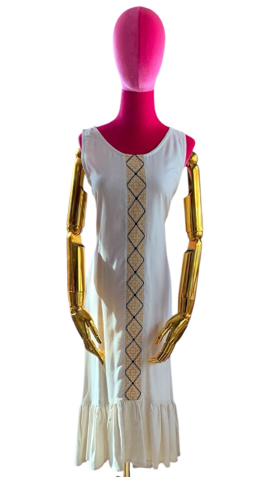 Vestido blanco con linea de rombos amarillos